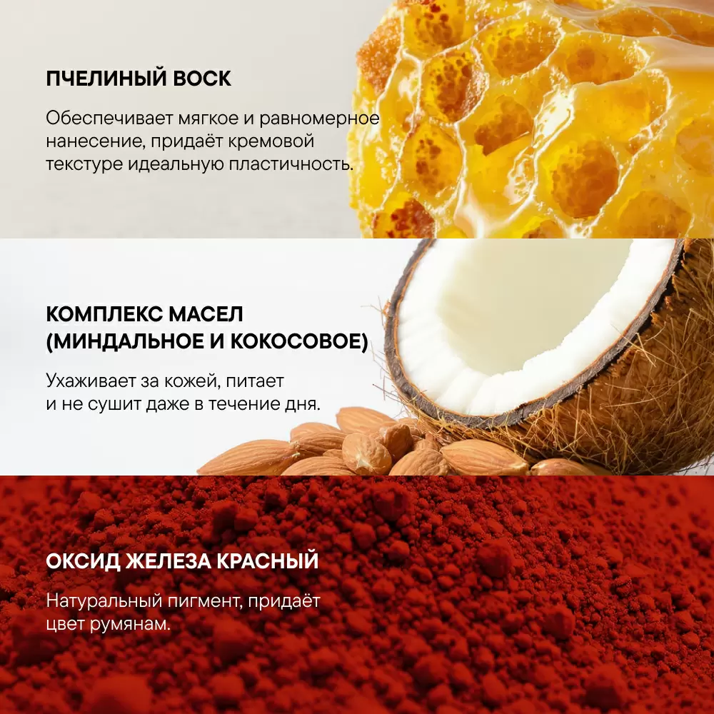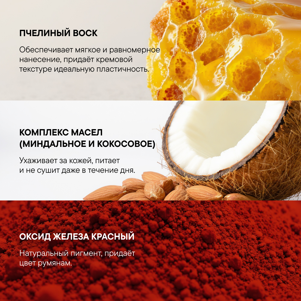 Румяна для лица кремовые Ecomake «Mystery Rose» — это идеальное решение для создания естественного и сияющего румянца. Их кремовая текстура легко наносится и растушевывается, обеспечивая ровное и стойкое покрытие. Румяна обладают минеральным составом, который не только придает коже красивый цвет, но и заботится о ней, благодаря компонентам, таким как воск пчелиный, масло миндаля и масло кокоса. Их универсальный розовый оттенок подходит для любого типа кожи и может использоваться как для лица, так и для глаз, позволяя создать как дневной, так и вечерний макияж. Благодаря своей компактной форме в виде стика, румяна удобны в использовании и легко помещаются в любой сумочке, что делает их незаменимым аксессуаром для каждой женщины. Ecomake «Mystery Rose» — это не просто декоративная косметика, а забота о вашей красоте.