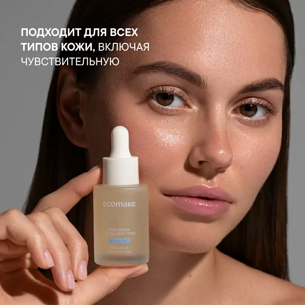 Сыворотка с пробиотиками — интенсивное увлажнение и восстановление защитного барьера кожи в одном флаконе. Легкая формула быстро впитывается, глубоко насыщая кожу влагой за счет комбинации гиалуроновой кислоты, глицерина и протеинов пшеницы. Сквалан предотвращает трансэпидермальную потерю влаги, делая кожу мягкой и эластичной. Лизаты бифидо- и лактобактерий восстанавливают микрофлору, укрепляя местный иммунитет. Экстракт мальвы, бисаболол и д-пантенол уменьшают покраснения и успокаивают. Молочная и фитиновая кислоты мягко выравнивают тон и стимулируют обновление клеток. Подходит для всех типов кожи, включая чувствительную. Используйте утром и вечером после тоника для пролонгированного увлажнения и сияния.
